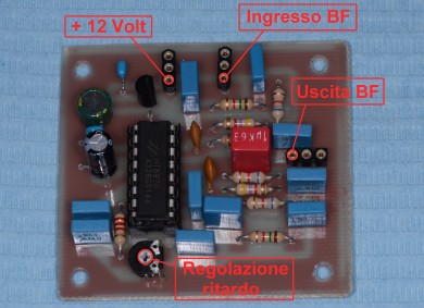 Per avere un ampiezza del segnale invariato tra l'ingresso e l'uscita. in fase di collaudo ho dovuto inserire in parallelo sia su R3 che R7 una resistenza da 22kohm. In questo modo è possibile escludere con un semplice deviatore la linea di ritardo senza dover ritoccare i livelli di taratura della BF.